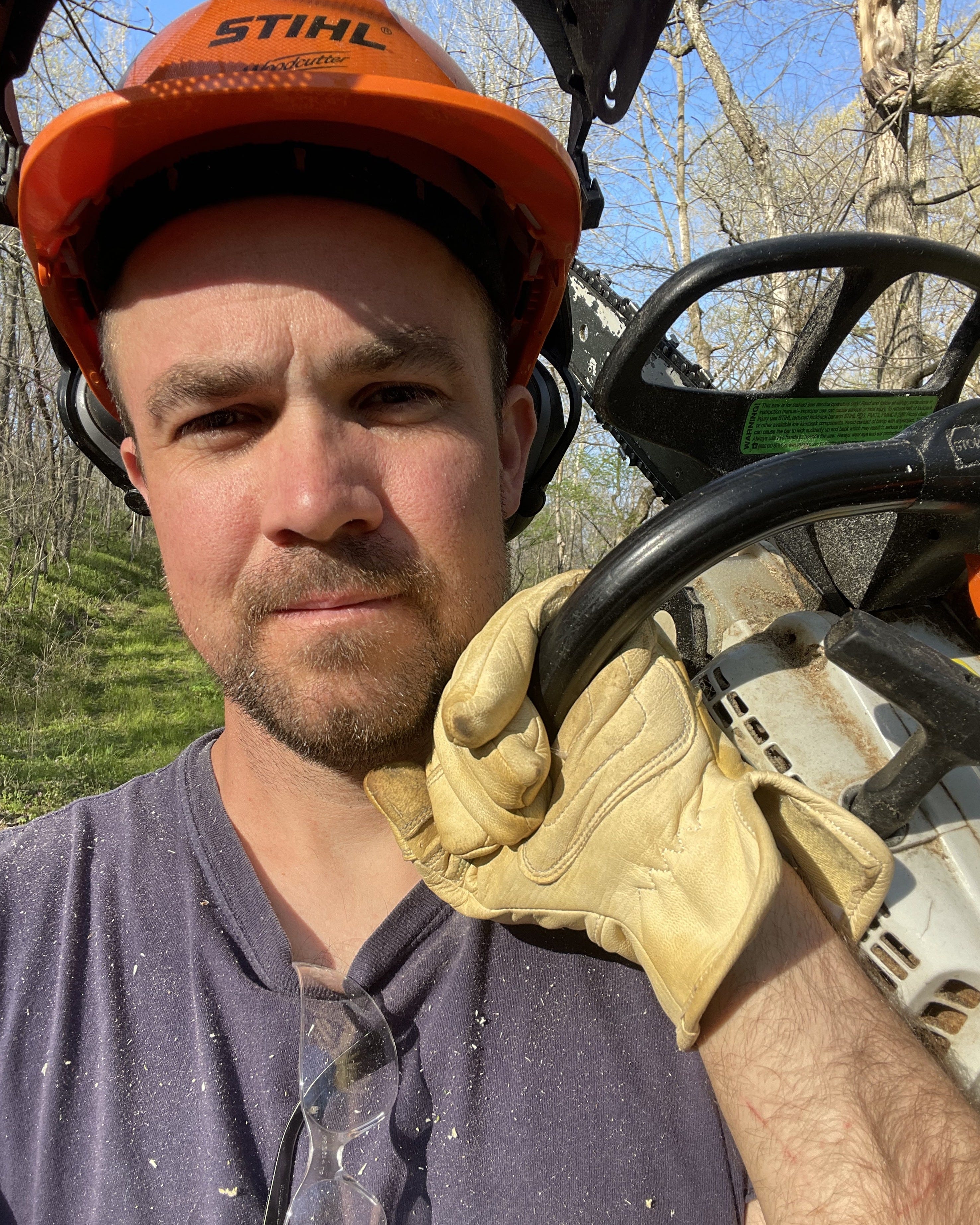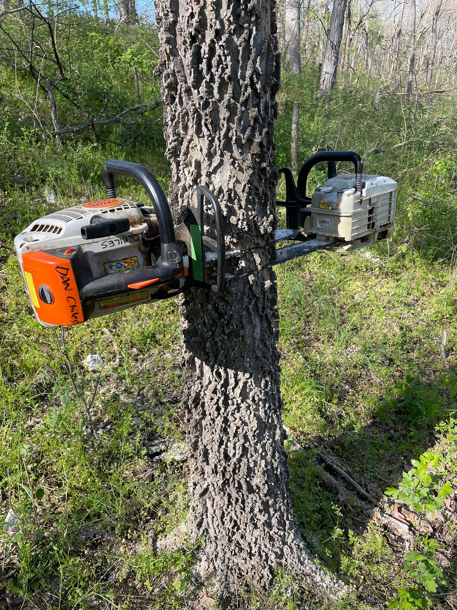 With chainsaws and lots of protective gear we go through and cut the marked trees down.